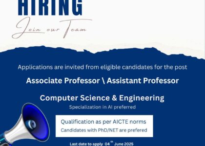 Vacancy for Assistant Professor in Computer Science & Engineering Last Date to Apply: 04th June